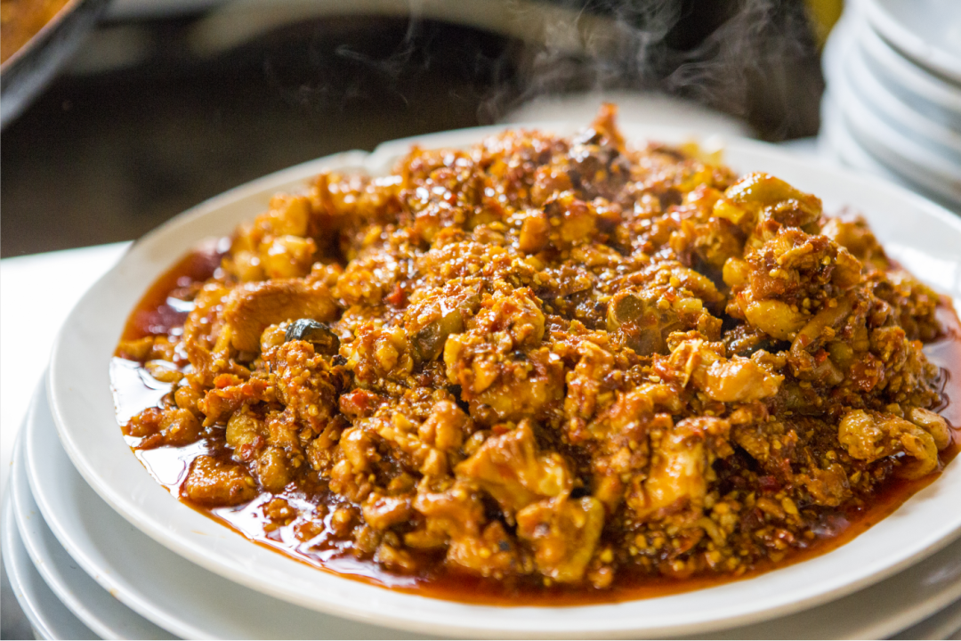 云南曲靖沾益辣子鸡的这一味“辣”,与川渝地区配上花椒的麻辣不同,和湖南生吃辣椒的豪爽相异,其以本地土鸡为食材,用曲靖本地种植的香辣椒等10余种配料,经过民间传统烹炒手艺制作而成。它辣而不辛、食和味醇,是名副其实的“下饭神器”。