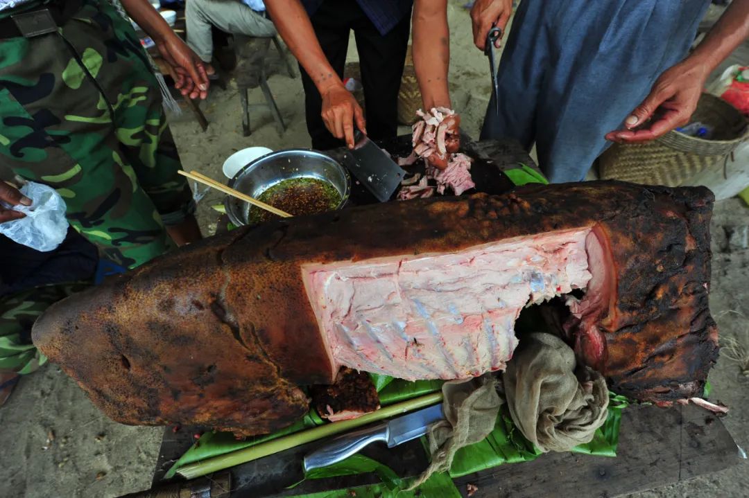 盈江火烧猪 尹以沛 摄 德宏州委宣传部 供图