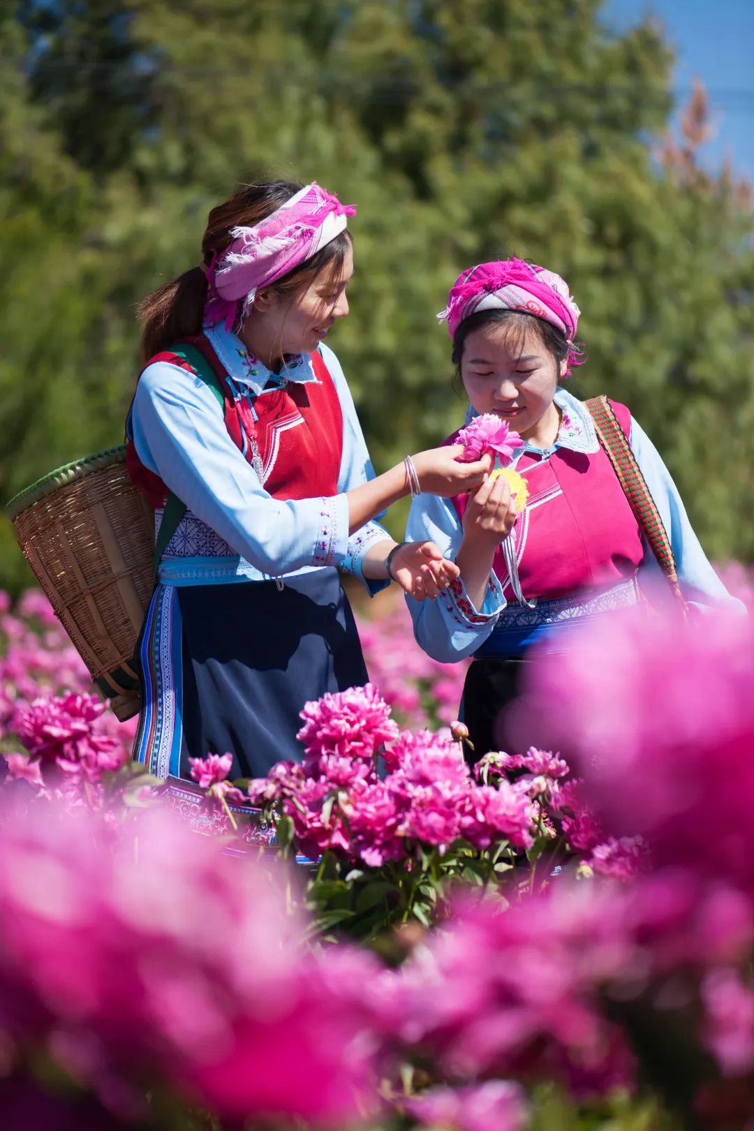 夏日,大理白族自治州洱源县马耳山芍药花盛开,姹紫嫣红、繁花似锦。游客可在花海中体验“人在花间走,沁染满身香”的诗情画景。