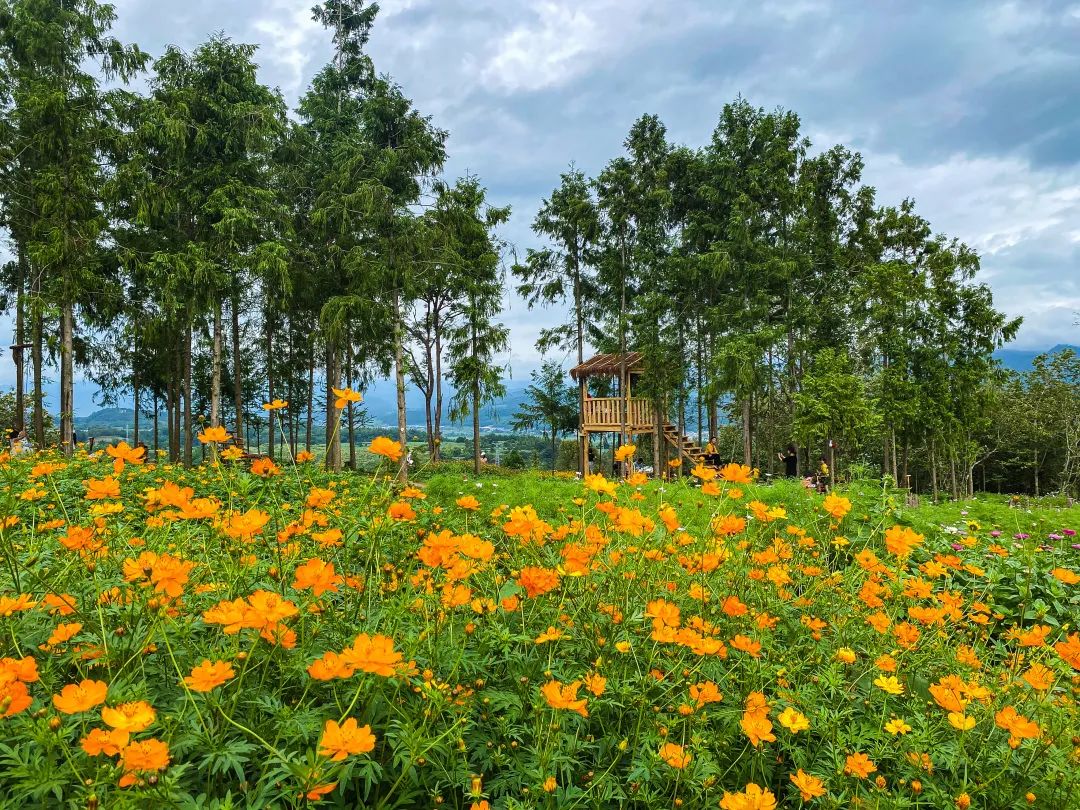 除了火红的凤凰花,在丽江市玉龙纳西族自治县白沙镇白沙村的听花谷,各类盛开的鲜花姹紫嫣红,仿佛也在向世界宣告它们的缤纷和热烈。