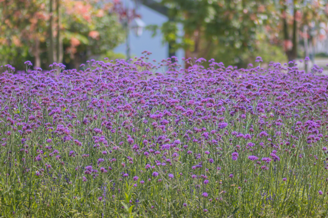 一片又一片“花海”,铺满平地、爬满山坡,大红的、粉红的、紫红的……装点着湖边花园,热情奔放。在听花谷花廊内流连,或在廊外漫步,不时瞥一眼花丛,心情都被花朵点亮了。