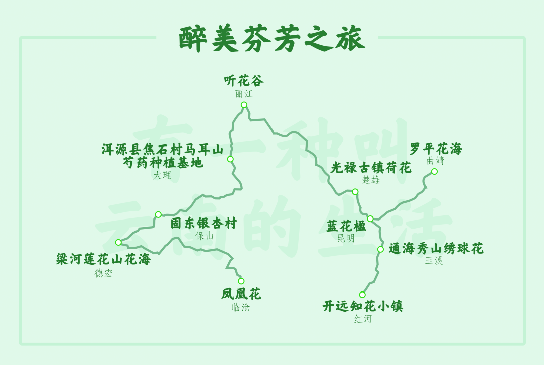 曲靖罗平的油菜花海成就金玉满堂之乡,保山腾冲的连片银杏书写金色童话。