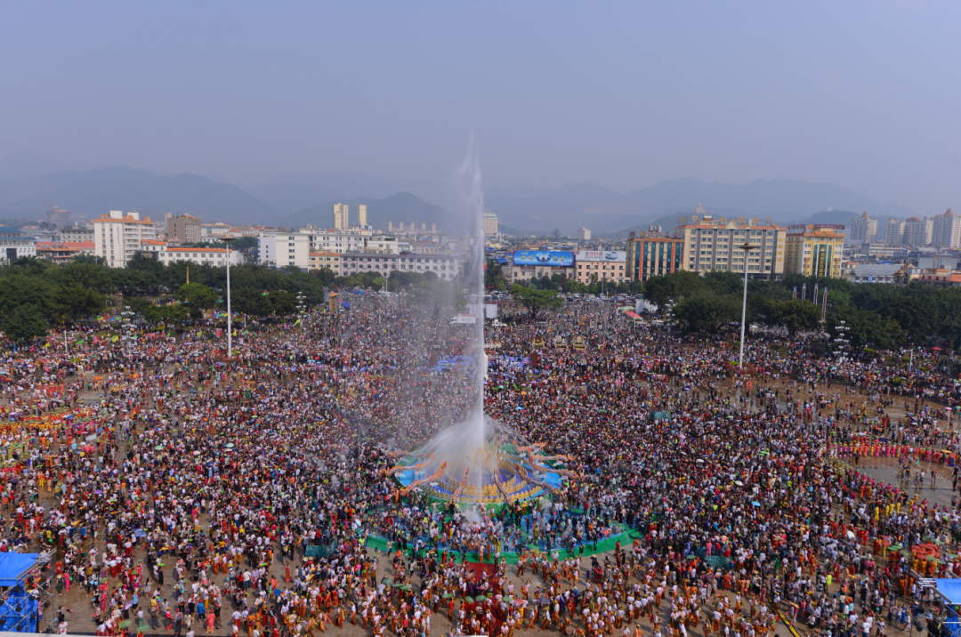 “水花放,傣家狂。”泼水节,德宏傣语称“摆爽南”,德昂语称“拱拍”,也叫“浇花节”,一般于每年的4月中旬举办,是傣族、德昂族最为盛大的节日。
