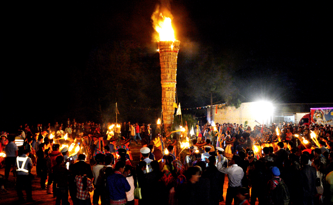 每年的农历六月二十四,是彝族人民一年中最重要的一天,也是彝族十月历岁首之节。这一天,彝族人民共同庆祝、欢度生活中最盛大、最热闹的节日——火把节。火把节,楚雄彝族称其为“阿嘟将”,即“火节”“祭火节”的意思。据最早记录彝族火把节的元代史籍《云南志略》记载:“六月二十四日,通夕以高竿缚火炬照天,小儿各持松明火相烧为戏,谓之躯攘。”