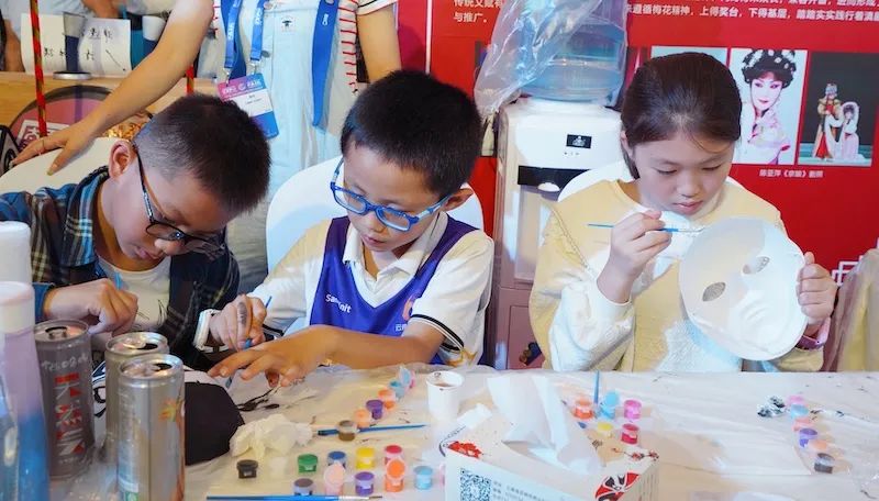 第7届南博会的文化旅游馆还推出了不少新鲜有趣的非遗互动项目,在传统的“买买买”外,也为带孩子逛展的家庭提供了更多选择。序馆的文创品展台,云南民族博物馆带来了创意满满的集章活动,代表云南文化的七十多种动植物、建筑以及非遗项目元素被做成“呆萌”的印章,只需要买上一本配套的民族节庆主题笔记本,就可以亲手盖满印章。展馆尽头的滇剧展演区则进行着趣味脸谱上色DIY活动,现场准备了白色脸谱和各色水彩,市民、游客可自由上色,收获一张独属于自己的彩色脸谱。来自四川的冯先生说,自己本身就是戏剧迷,没想到来南博会可以自己画脸谱带走,于是就让孩子画了一张,也算是来云南旅游的一份独特“土特产”。