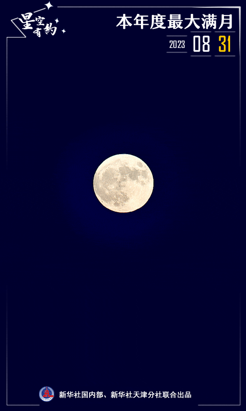 天文预报显示,8月31日9时36分月球将达到满月的状态,这是全年最接近地球的满月,因此也是本年度最大的满月,同时,天空中还将上演土星合月。