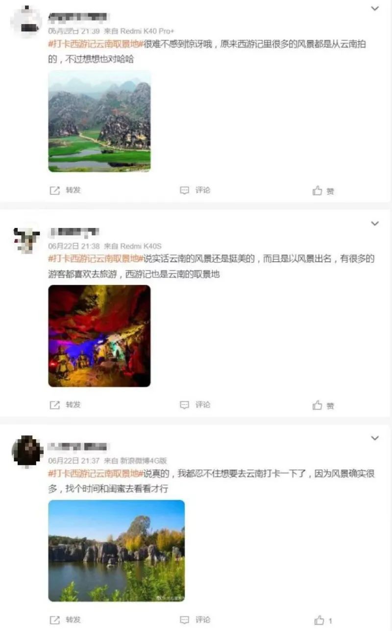 云南省文化和旅游厅“经典名著+旅游”全民宣传推广活动启动后,迅速成为网上的热点话题。截至目前,“打卡西游记云南取景地”相关话题在新浪微博总浏览量已超2亿人次。