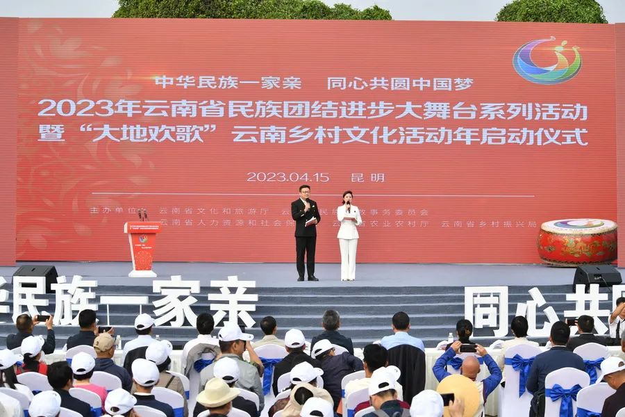 4月15日,以“中华民族一家亲.同心共圆中国梦”为主题的2023年云南省民族团结进步大舞台系列活动暨“大地欢歌”云南乡村文化活动年启动仪式在云南民族村举行。