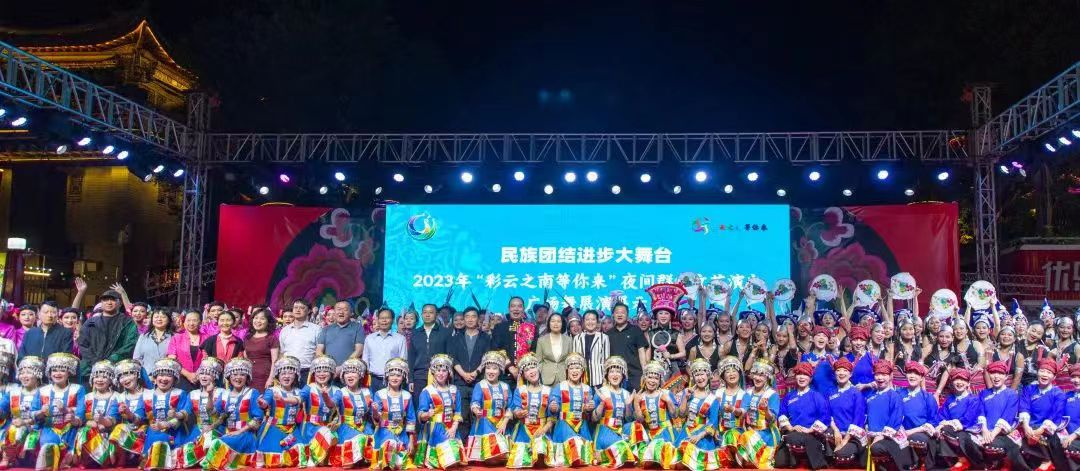 4月26日,云南省民族团结进步大舞台系列活动—2023年“彩云之南等你来”夜间群众文艺演出广场舞展演展示活动,在楚雄州彝人古镇隆重举办。此次活动由云南省文化和旅游厅主办,云南省文化馆、楚雄州文化和旅游局承办。