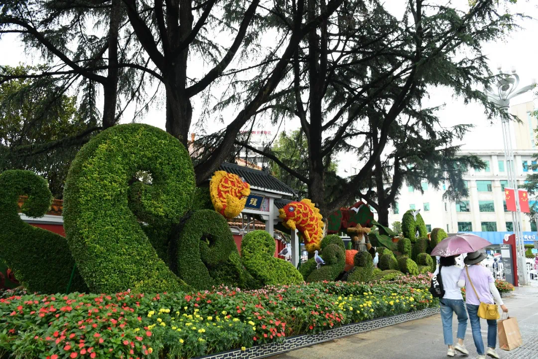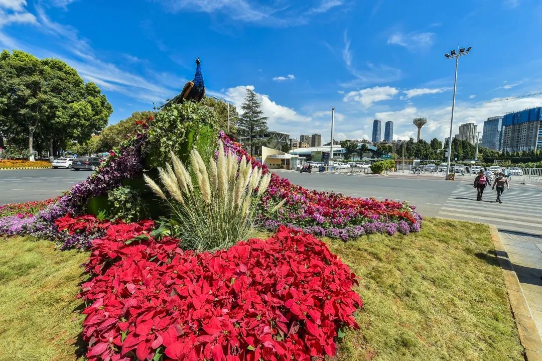 在北京路、人民路、机场路等城市主次干道,海棠、大丽花、菊花等时令花卉把花坛装饰得愈发靓丽。各县(市)区园林绿化管理部门巧妙利用多种植物和少数民族等元素开展中秋国庆花艺装饰工作,将道路节点打造成景观亮点,持续提升城市面貌和品位。