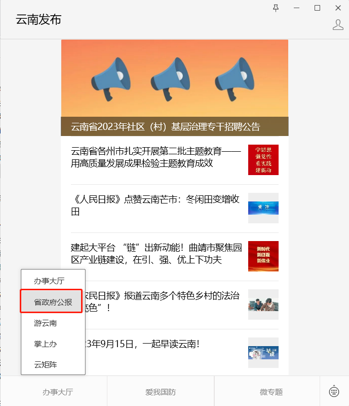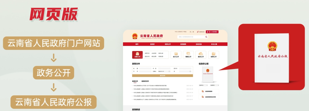 《云南省人民政府公报》是由云南省人民政府主管,云南省人民政府办公厅主办,免费公开发行的政府出版物。主要刊载省政府规章、省政府和省政府办公厅文件、省政府部门规范性文件、省政府大事记、人事任免及其他需要刊载的政务资料。