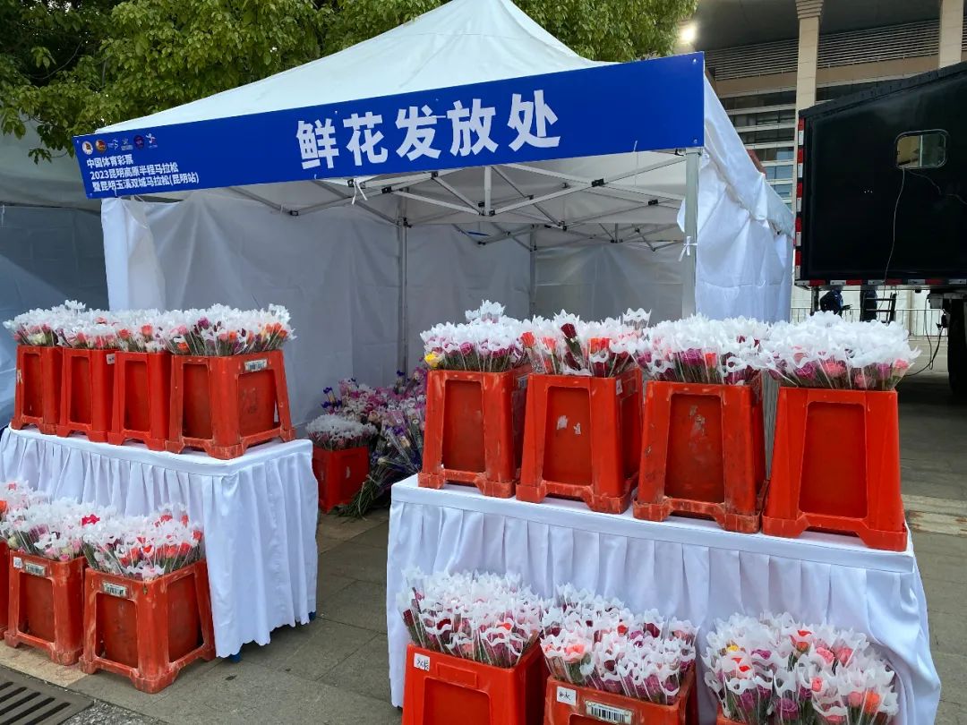 “天气常如二三月,花枝不断四时春。”昆明是世界知名的“春城花都”,总有一支鲜花为你而来。本届赛事上,呈贡区提供了15000支鲜花赠予完赛选手,同时还为半程马拉松前三名选手准备了美丽的花环,向世界各地的跑友展现着春城花都的魅力与浪漫。冲过终点后,志愿者们为选手们一一送上“昆明的礼物”,选手们惊喜万分,纷纷拿起手机拍照留念。
