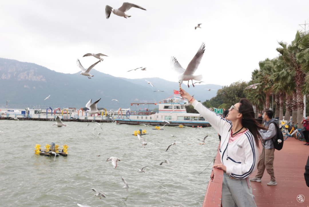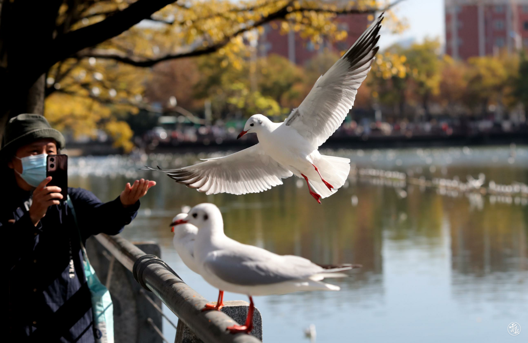 10月12日,昆明海埂东码头鸥群飞舞。陈飞 胡妤雅 摄