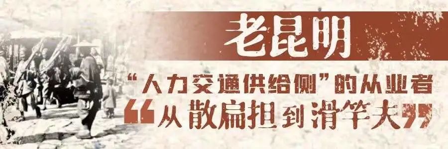 清末民初,昆明还有“夫行”专门经营城内搬运业务。旧时马帮运货到昆明,到城外西南就得下货,由滇池水路来的船只也要在篆塘下货。商货入城由这些夫行转运。他们招来搬运工人,互保入行,造册编号发牌,转运商货。他们通过官府垄断城内搬运,声称若有遗失,包查包赔——而搬运工的主力,就是“背脚”“三吹火”“四平肩”“多脚虫”和“散扁担”。