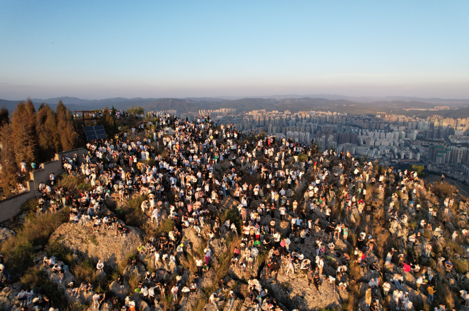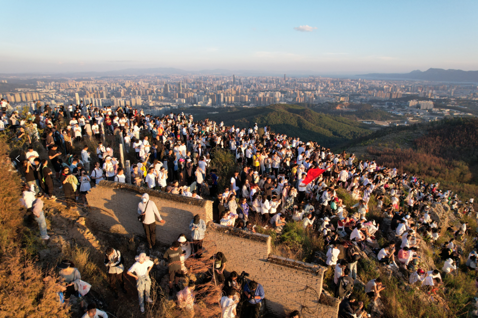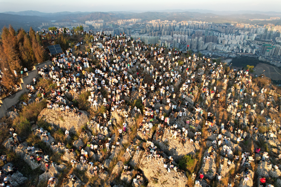 到了山顶,人群更是密密麻麻,几乎没有空地。游客们争相欣赏风景、拍照留念,站在山顶看云卷云舒,是件惬意美事,尽管拥挤,但依然挡不住大家对美景的喜爱和追求。