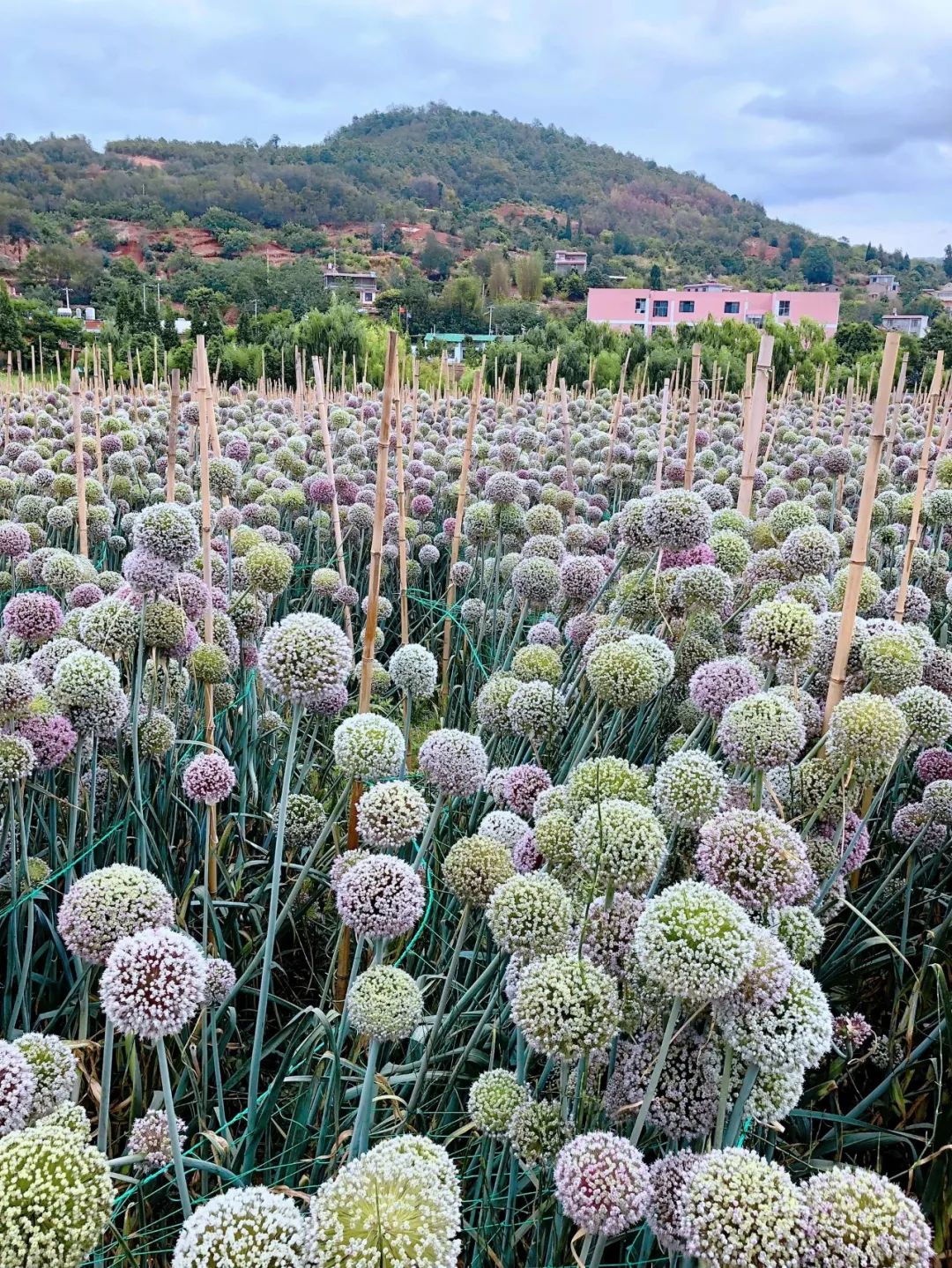 近日,昆明市五华区瓦恭小学旁的大蒜花海成为市民新晋的“网红”打卡点,只用一秒就炸出了网友的“哇哦”:“不愧是彩云之南,葱花都这么有特点。”