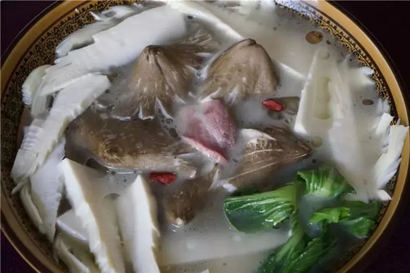 吃野生菌火锅的时候,放入新鲜野生菌一起煮,菌子煮熟后菌肉肥厚、饱含汤汁、鲜甜可口,美味至极。也可与时新蔬菜搭配,再喝上一碗饱含菌子鲜香的汤汁,超级满足。