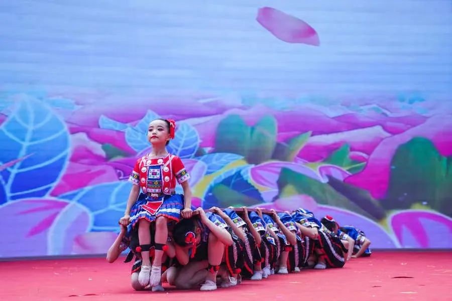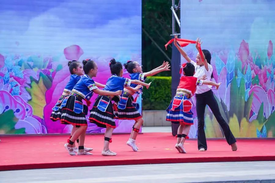 现场活动的舞蹈作品《瑶山红》讲述了支教老师和孩子们美好的相遇,当一场无情的暴风雨来袭,带走了这位美丽的灵魂筑梦者,却留给了孩子们生还的机会以及无尽的感怀与力量。舞蹈表演融入了很多瑶族舞曲的元素,舞蹈节奏欢快,动作张力十足。