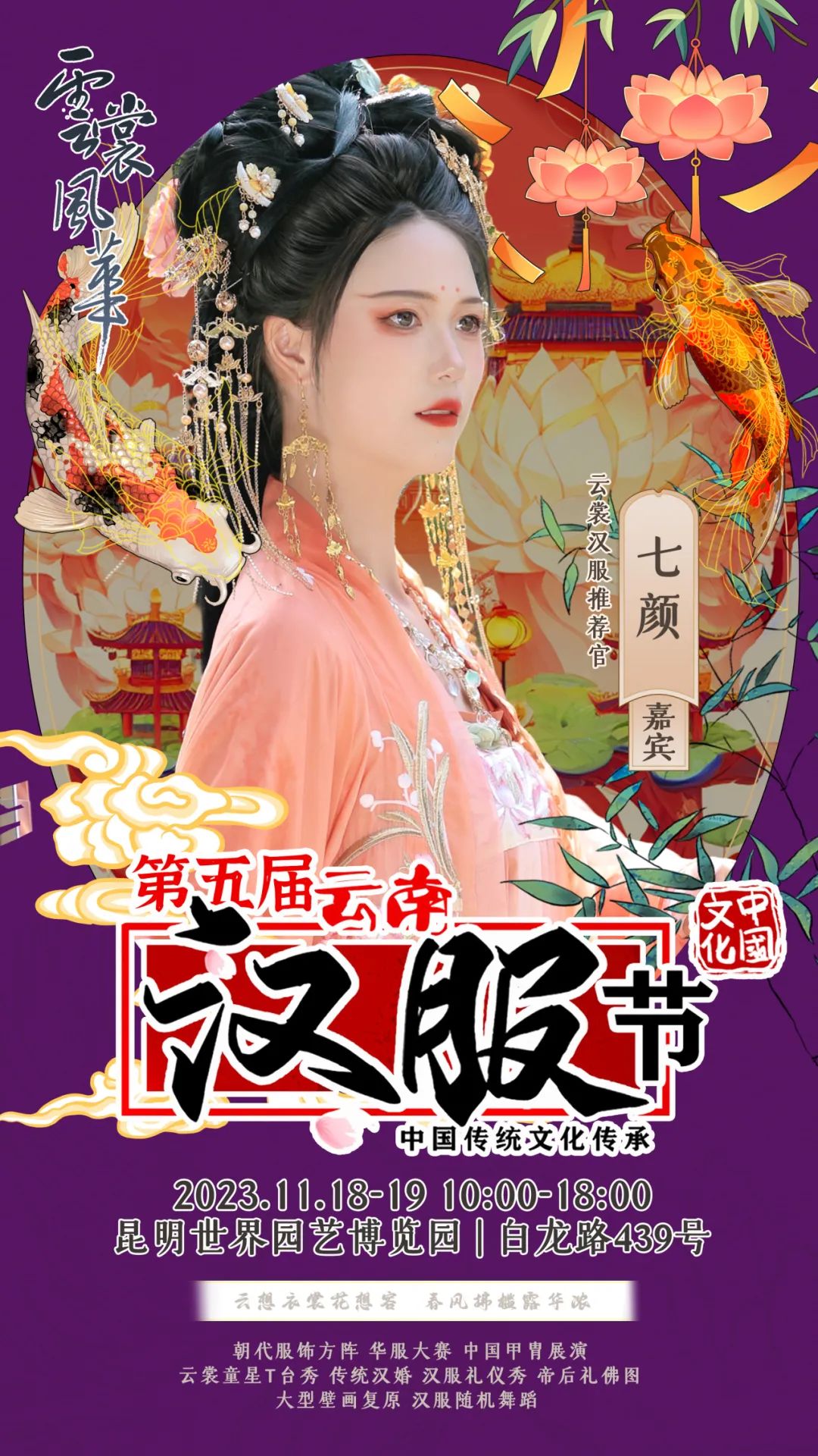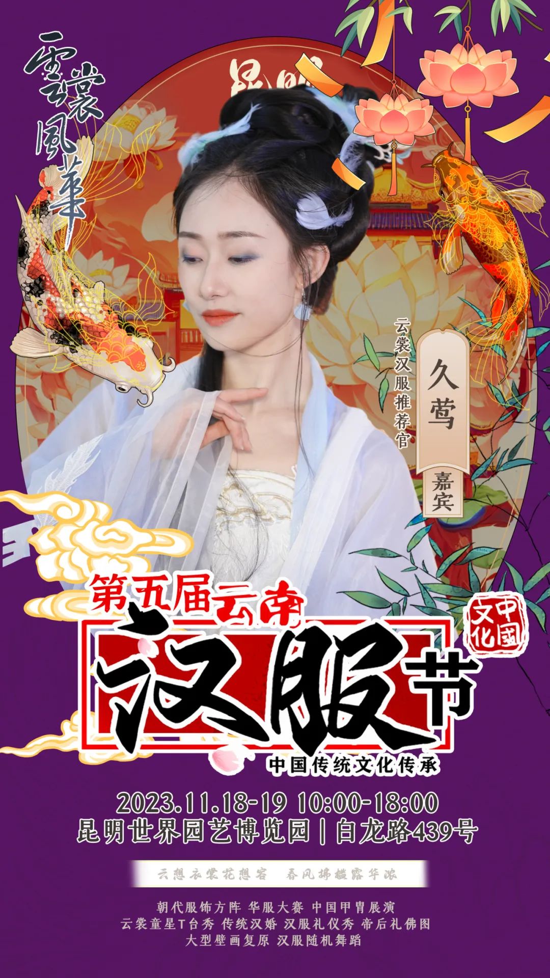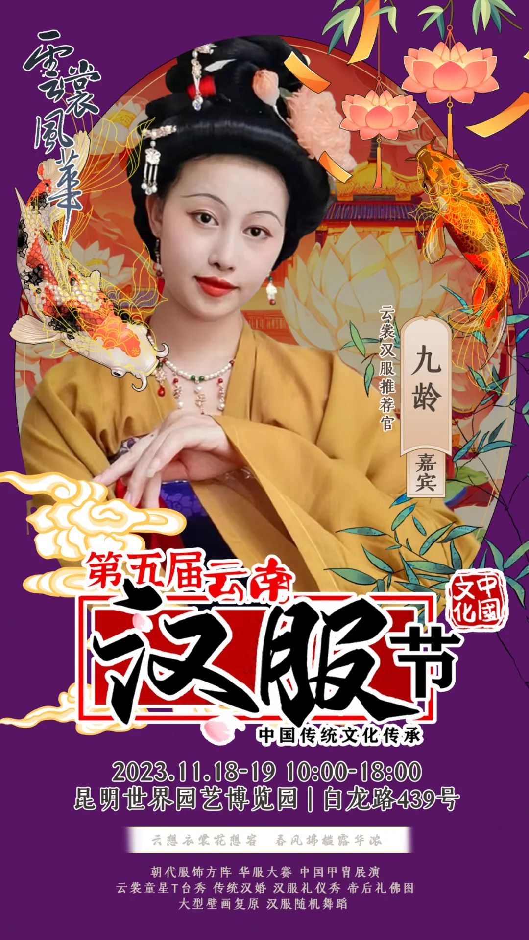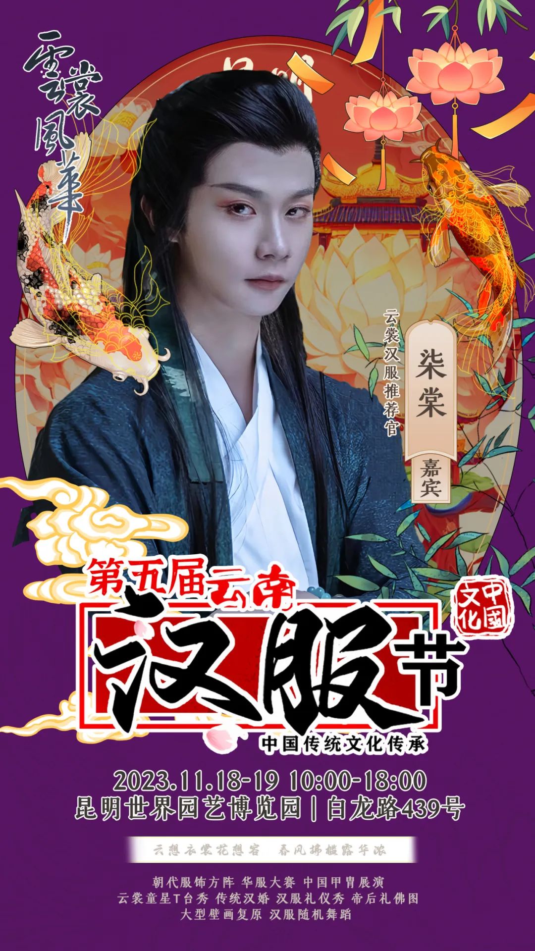 on 周四, 11/16/2023 - 09:11 作者 编辑:朱裕玲 文字校对:田春玲 徐敏 初审:刘伟 终审:周赤东 云裳风华第五届云南汉服节暨“世博园汉服出行日”将于11月18日-19日在世博园举行届时将有哪些嘉宾闪亮登场与大家见面互动呢?第一波揭秘,速来围观!嘉宾签售需要购票,购票详情请关注昆明世博园旅游区微信公众号。 来源 昆明文旅