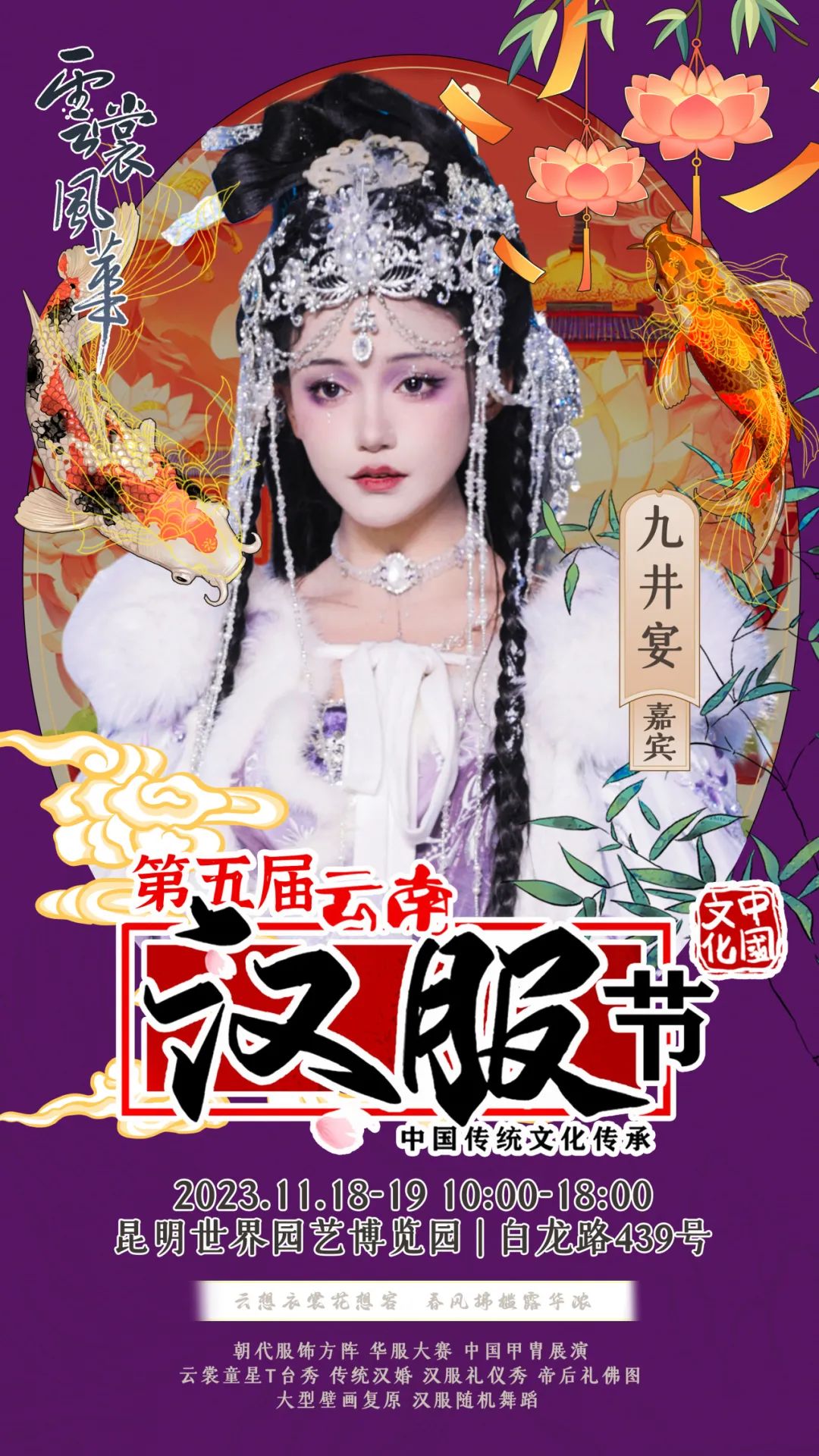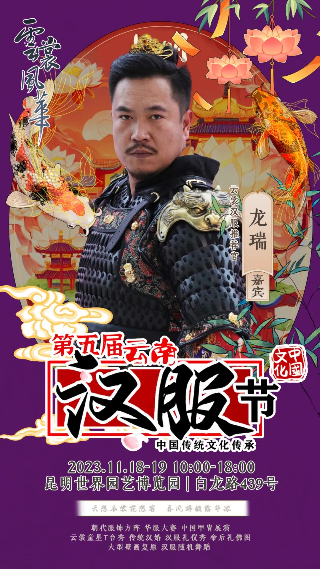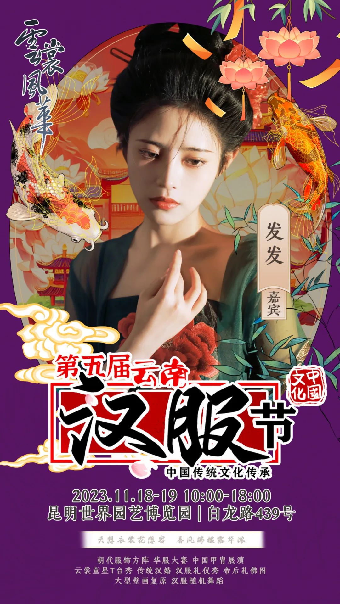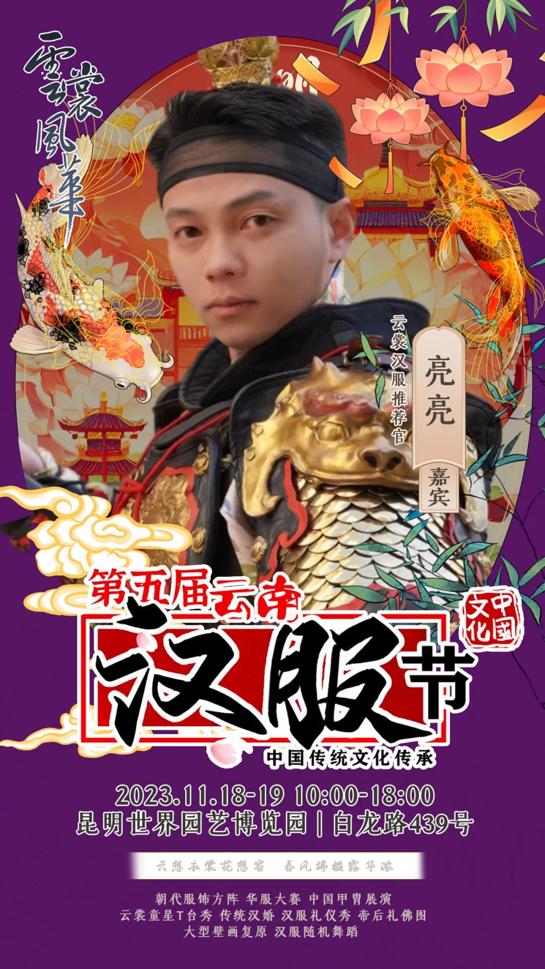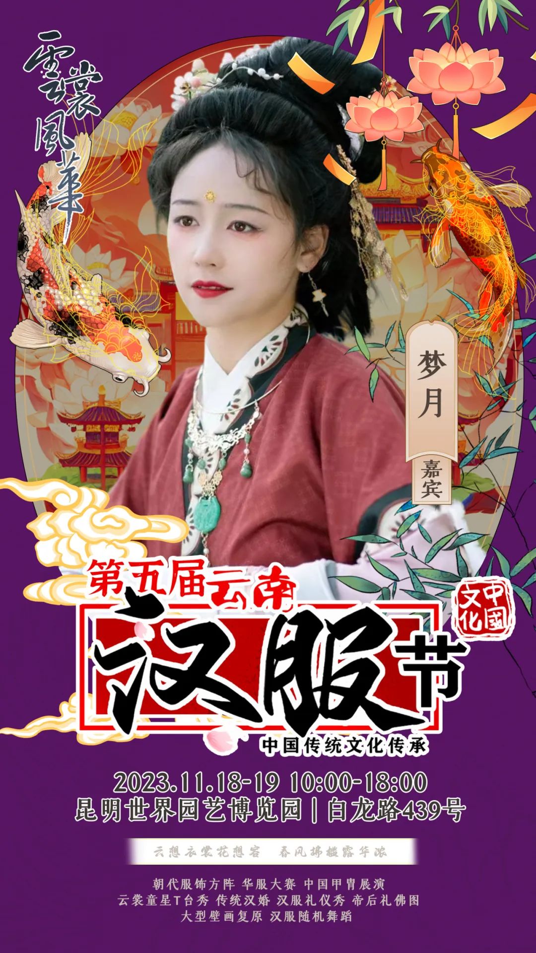on 周四, 11/16/2023 - 09:11 作者 编辑:朱裕玲 文字校对:田春玲 徐敏 初审:刘伟 终审:周赤东 云裳风华第五届云南汉服节暨“世博园汉服出行日”将于11月18日-19日在世博园举行届时将有哪些嘉宾闪亮登场与大家见面互动呢?第一波揭秘,速来围观!嘉宾签售需要购票,购票详情请关注昆明世博园旅游区微信公众号。 来源 昆明文旅