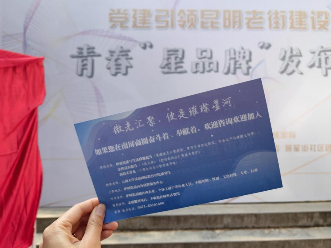 在昆明老街党群服务中心专题开设为老街青年商户、务工人员等青春“新”力量提升综合技能的公益青春“星课堂”,助力参学者成为老街旅游经济发展的推动者。