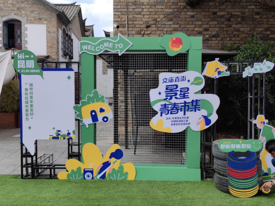 景星街社区坐落于五华区护国街道,商贸繁荣、人文荟萃,是昆明市唯一保存完整的历史风貌街区,也是省级历史文化街区,商业气息与历史古迹交织碰撞,时尚购物中心鳞次栉比,中小微企业、个体工商户遍地开花,是五华区旅游消费来源的重要街区。由于景星街辖区旅游资源比较分散、缺乏品牌影响力,吸引力逐渐降低,导致经济发展稍显疲软,亟需注入一股新生力量,打造辖区经济新的增长点,为此,景星街社区紧抓痛点、难点、堵点,着眼于建立特色青春系列品牌,组织动员辖区青年力量,服务中心大局工作。