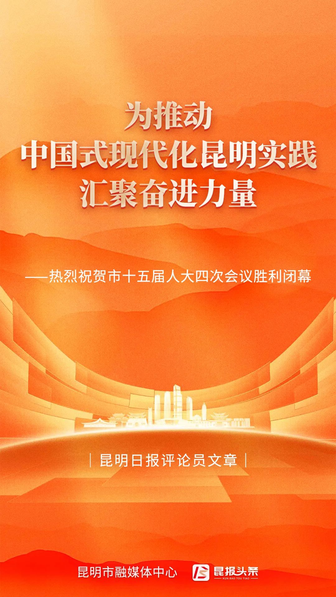 又是一年春作首,万事仍需竞争先。要把美好蓝图变成生动实践,唯有用实干作答、用实绩交卷、靠奋斗出彩。让我们更加紧密地团结在以习近平同志为核心的党中央周围,胸怀“国之大者”,心系“省之大计”,落实“市之大事”,始终保持昂扬奋进的精神状态,着力在坚持党的领导上作示范,着力在提高立法质量上求突破,着力在强化监督刚性上提质效,着力在发挥代表作用上显成效,着力在加强自身建设上下功夫,致力“六个春城”建设,助力“当好排头兵、实现大发展、率先现代化”的奋斗目标早日实现,共同谱写昆明经济社会高质量发展新篇章,为奋力推动中国式现代化昆明实践贡献人大力量。