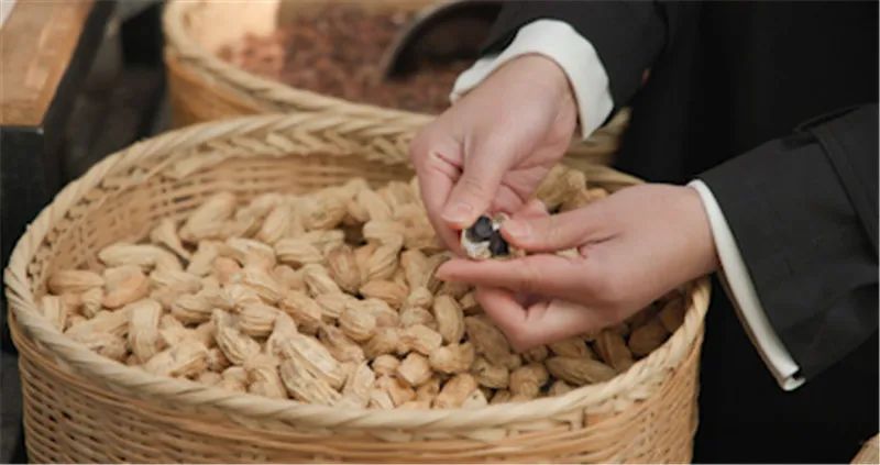 拿一粒花生放在手中,它的外壳油亮亮的,仿佛涂抹了一层黑色的蜡。轻轻一剥,里面的果仁呈深紫色,看起来非常诱人。除了独特的外观,口感也很特别,吃起来有淡淡的甜味。旁边的大婶插话道:“这种黑花生在我们西翥可是很受欢迎的。逢年过节,大家都会把它当作送礼的好选择。不仅因为它营养价值高,更因为它的寓意好,象征着健康和幸福。”
