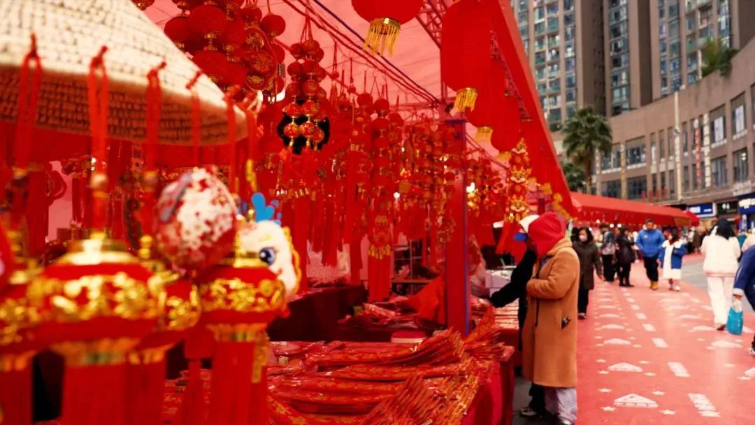 在南屏步行街和正义路上,红红火火的年货街已开市。从糖果饼干、酒水饮料、生鲜果蔬到生活日用品、手工艺品,应有尽有。除了传统年货,年货街还引进了地方特色小吃,让市民在选购年货的同时,品尝到各地的美食。