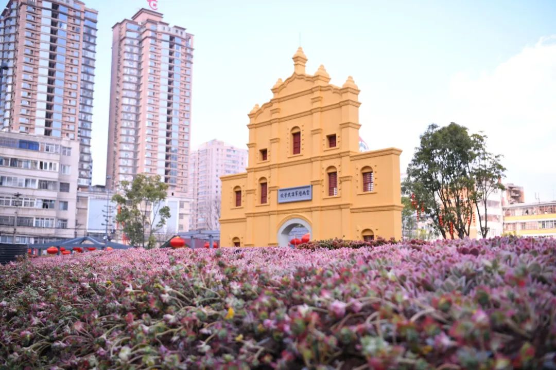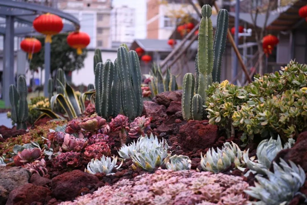30余万盆品种多样、色彩斑斓、与昆明阳光条件相匹配的多肉植物有层次地铺满公园,充满设计元素的环形结构游览路线、国立西南联合大学校门、云南陆军讲武堂、米轨小火车等充满昆明历史气息的文明符号串联其中,将为公众打造一个充满诗意文化特色打卡场景的新春乐园和“顽·LIVE.MAll”的新春生活方式,在繁华的街区打造出一个集创意、构图、色彩为一体的新型文化空间。