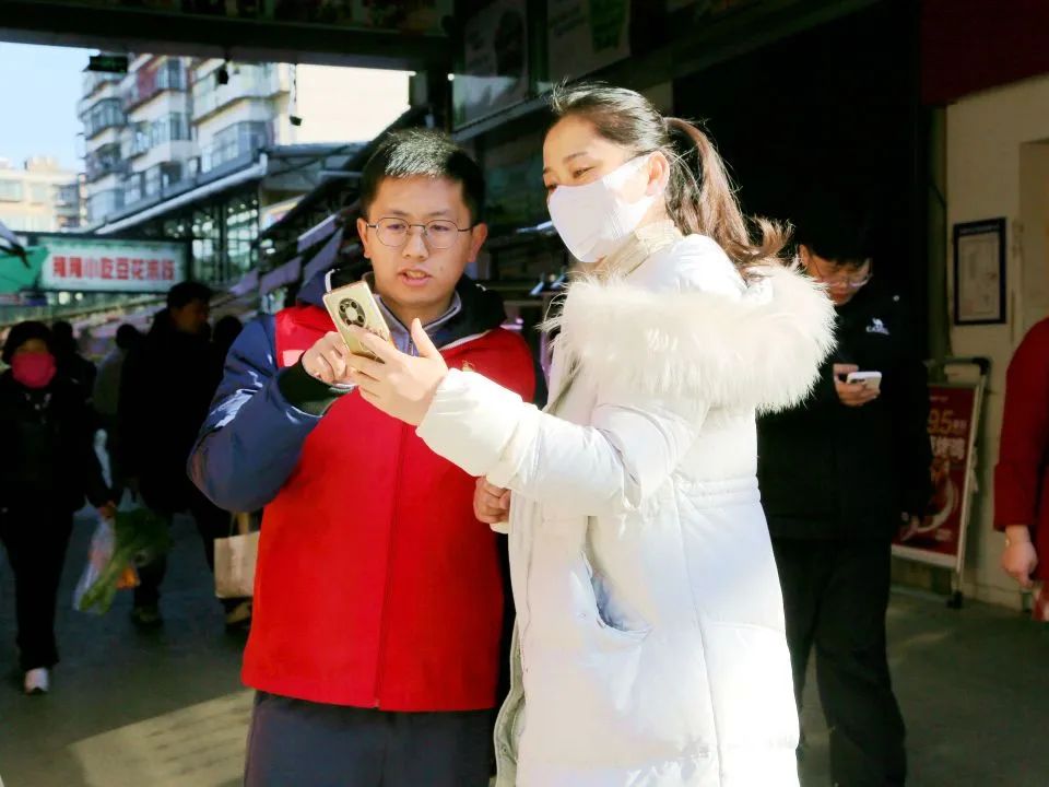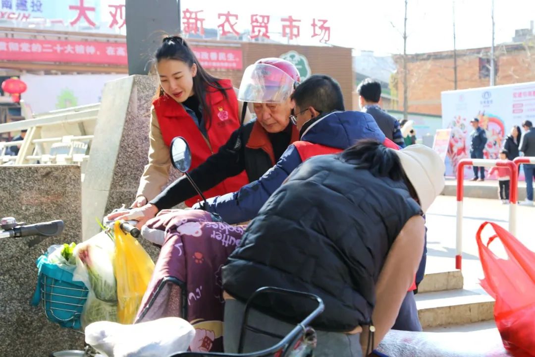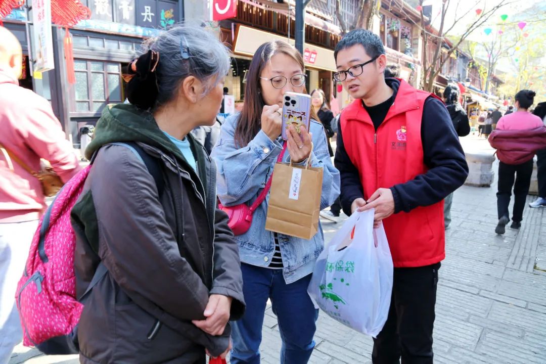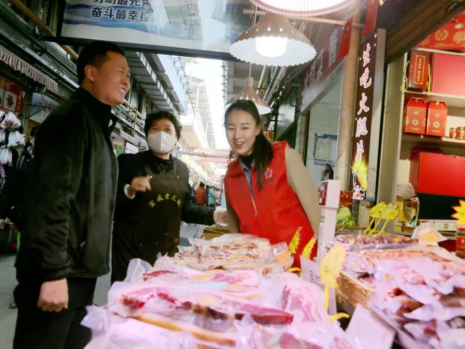 五华区党员志愿者在大观篆新农贸市场为市民、游客、商户提供暖心服务,以满满烟火气、浓浓为民情迎接龙年春节。