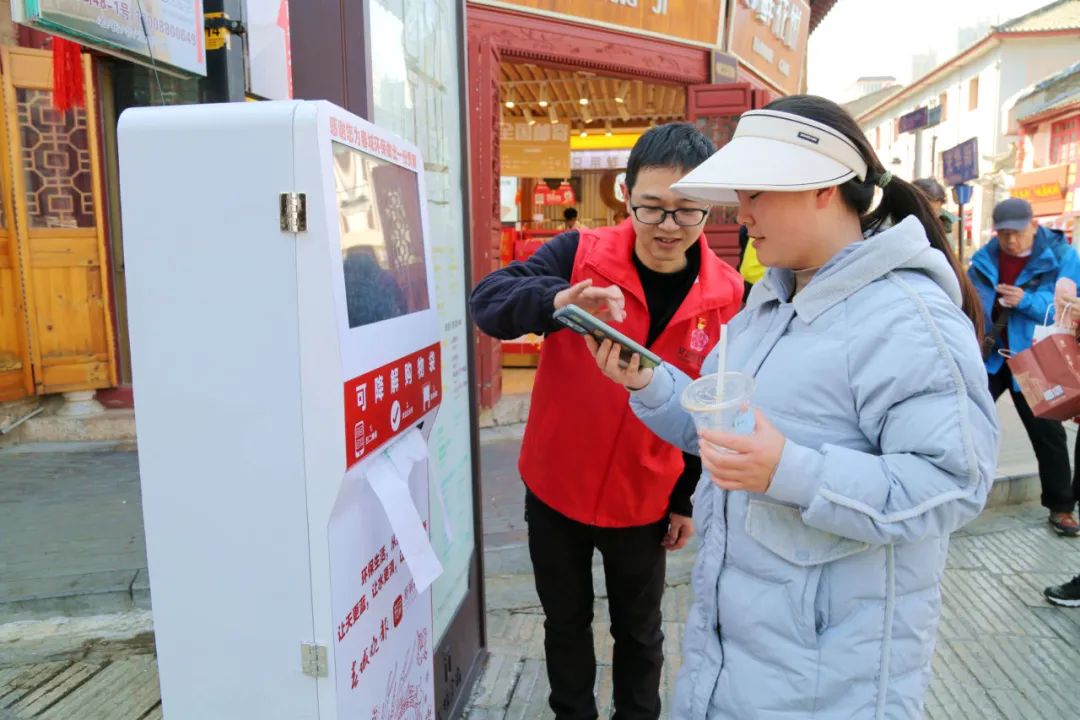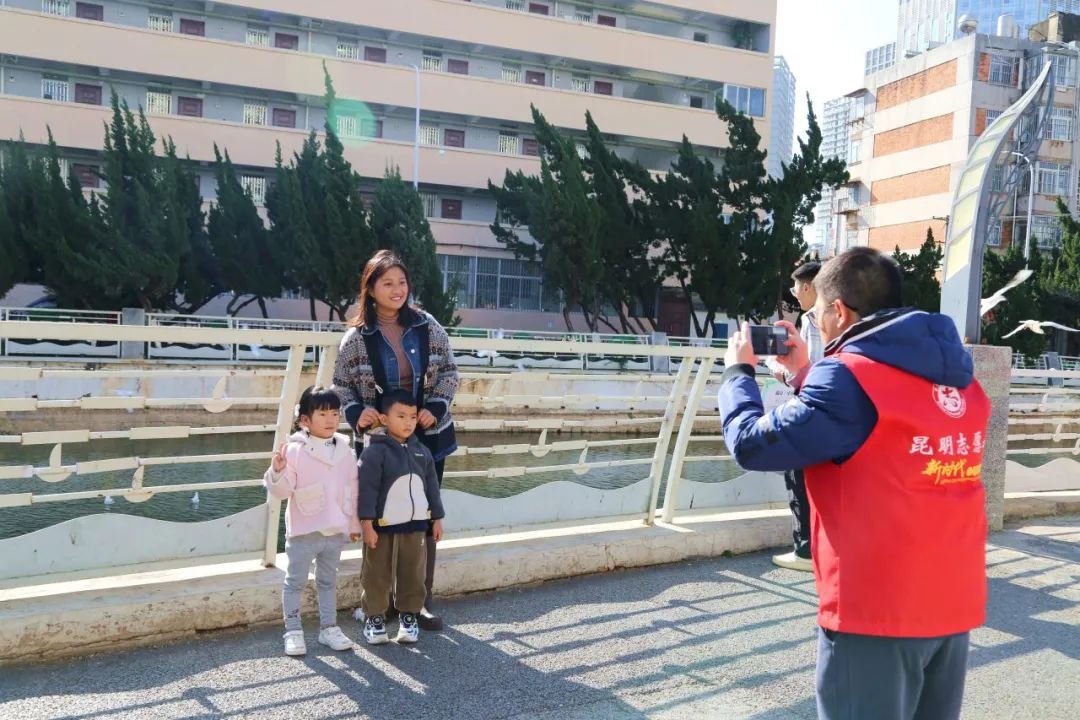 五华区党员志愿者在游客集中的景点为群众提供咨询、拍照留念等服务,让旅客群众切身感受来自春城的“冬日暖阳”