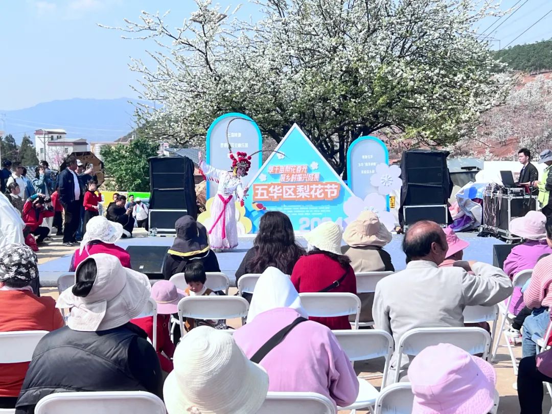 2024年3月10日上午10点,五华区梨花节系列活动在西翥街道办事处陡普鲁社区白泥塘隆重上演。本次活动五华区文化和旅游局、五华区文化馆以“四季村晚”戏曲进乡村为主题,上演了一台精彩的文艺演出,旨在展示五华区乡村振兴建设成果和乡村文旅融合发展的成效。活动现场,绚丽多彩的舞台、震天动地的鼓声,为文化节揭开序幕,吸引了众多村民和游客前来观看。