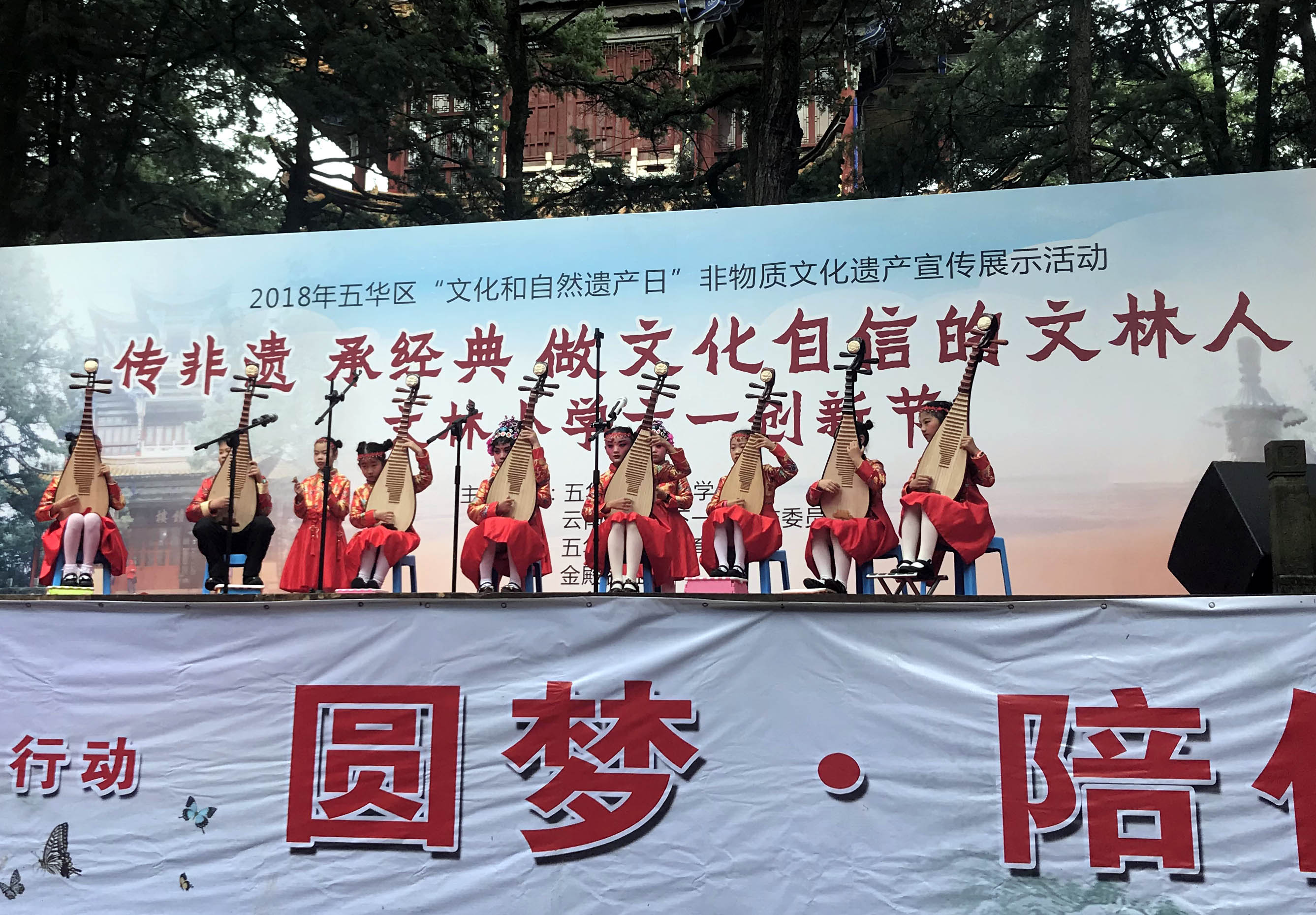 2018年6月9日为我国“文化和自然遗产日”,五华区为了大力宣传《中华人民共和国非物质文化遗产法》、《云南省非物质文化遗产保护条例》、《昆明市非物质文化遗产保护条例》和《保护非物质文化遗产公约》,弘扬中华优秀传统文化,突出非遗在满足人民日益增长的美好生活需要方面的作用。五华区文化馆非物质文化遗产保护中心于2018年6月1日上午在昆明市金殿公园开展“2018文化和自然遗产日——五华区非物质文化遗产展示展演活动”。